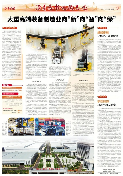 2023年11月,太重軌道交通產(chǎn)業(yè)園區(qū)和新能源產(chǎn)業(yè)園區(qū)雙雙獲評國家級“綠色工廠”,這既是對公司在安全、環(huán)保、節(jié)能等方面的充分肯定,也彰顯了國企的社會責(zé)任擔(dān)當(dāng)。