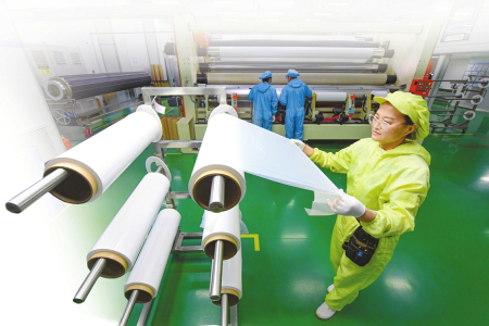 “只有這樣的構(gòu)造才能在隔絕電池正負(fù)極的情況下,還能保證鋰離子從中間自由通過(guò)。可是,想在‘塑料布’上打出這種小孔可不容易?!倍跑S剛介紹,當(dāng)下無(wú)論是手機(jī)、電腦,還是新能源汽車(chē),鋰電池早已與我們的生活息息相關(guān)。但由于鋰電池隔膜科技含量高,制造過(guò)程涉及多個(gè)學(xué)科,幾年前國(guó)內(nèi)的生產(chǎn)工藝、產(chǎn)品性能、產(chǎn)業(yè)鏈完整度都很低,隔膜等關(guān)鍵材料長(zhǎng)期被外資壟斷。