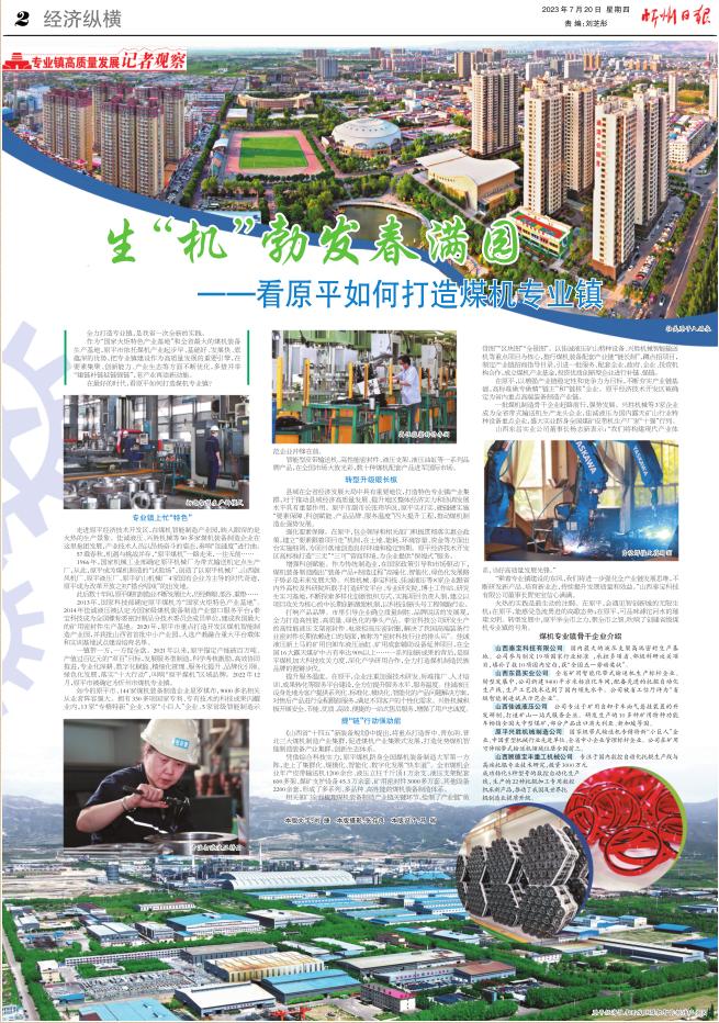 做強(qiáng)專業(yè)鎮(zhèn),釋放新動(dòng)能。近年來(lái),原平市把握山西省、忻州市特色專業(yè)鎮(zhèn)建設(shè)的重大機(jī)遇,在晉北機(jī)械制造強(qiáng)市的基礎(chǔ)上多措并舉,錨定產(chǎn)能破百萬(wàn)噸、產(chǎn)值過(guò)百億元的“雙百”目標(biāo),傾全力打造晉北煤機(jī)專業(yè)鎮(zhèn)。