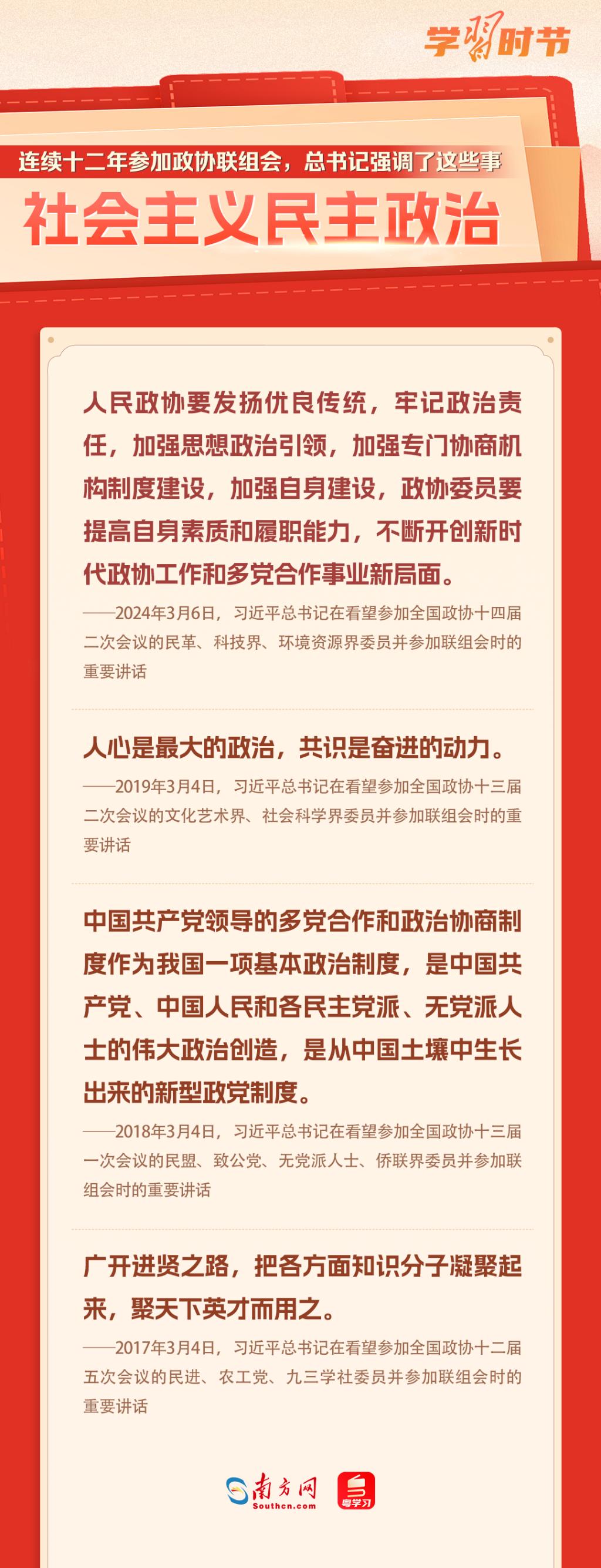 中國(guó)共產(chǎn)黨領(lǐng)導(dǎo)的多黨合作和政治協(xié)商制度是我國(guó)的一項(xiàng)基本政治制度。黨的十八大以來(lái),習(xí)近平總書記每年都參加政協(xié)聯(lián)組會(huì),對(duì)社會(huì)主義民主政治、民營(yíng)經(jīng)濟(jì)、自主創(chuàng)新、鄉(xiāng)村振興、社會(huì)保障、文化自信、國(guó)家統(tǒng)一等作出重要論述,讓我們一起重溫金句!