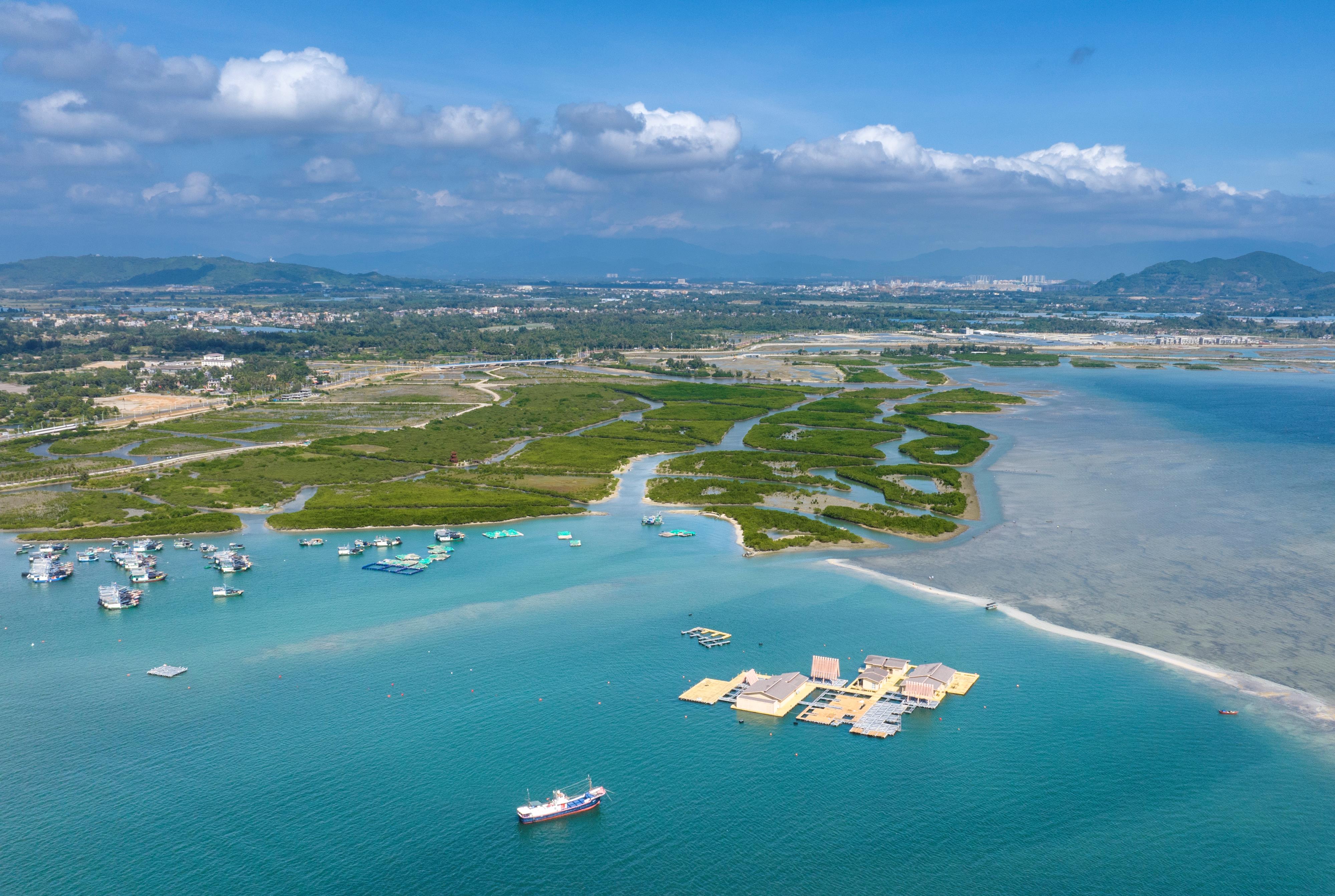 △海南陵水紅樹林國家濕地公園。紅樹林素有“海岸衛(wèi)士、鳥類天堂、魚蝦糧倉”的美譽(yù),在凈化海水、防風(fēng)消浪、維持生物多樣性、固碳儲(chǔ)碳等方面發(fā)揮著極為重要的作用。