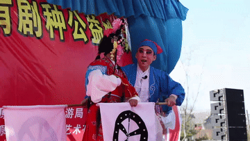 陽春三月,在太原古縣城,一出太原秧歌《劉三推車》正在生動上演,“農(nóng)夫”和“小仙女”在臺上一唱一和,游客們在臺下和著春風(fēng)看得入迷。