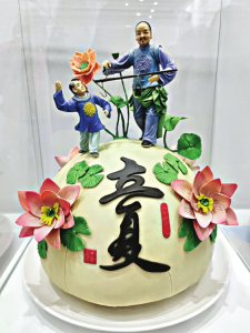 大展設立“二十四節(jié)氣花饃”“十二生肖花饃”“百面人生花饃”、國家級非遺項目花饃以及霍州花饃5個主題展區(qū)。“二十四節(jié)氣花饃”系列作品將節(jié)氣、農(nóng)事和習俗巧妙結合,講述了立春、雨水、驚蟄等24節(jié)氣文化,隨著節(jié)氣的更迭,花饃中的人物形象或耕種、或祭祀,傳達著自然與人類之間的和諧共生,生動再現(xiàn)了悠久的黃河流域農(nóng)耕文明;“十二生肖花饃”系列作品將十二生肖文化通過人物面塑作品巧妙再現(xiàn),賦予人物生肖特征,表達特定的文化意象與美好寓意;“百面人生花饃”展區(qū)展示了孝義花饃系列作品,展示了花饃在過節(jié)、生日、婚嫁、喬遷等人生重要生活場景中的運用及內(nèi)容形式等,表達了人們對幸福與和諧生活的美好愿望。
