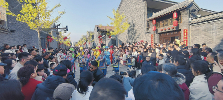 踏著節(jié)奏感十足的古風(fēng)電音,一群身著古服、戲裝的年輕人從人群中跳出來,瞬時(shí)集結(jié)編隊(duì),跳起熱舞。圍觀的人群跟著沸騰起來,大家鼓掌打拍、搖擺身姿,爆發(fā)出陣陣歡呼聲。農(nóng)歷大年初六,沁水縣土沃鄉(xiāng)下沃泉村的“沃泉星夢(mèng)童年小鎮(zhèn)”街道上,正在進(jìn)行的“國(guó)潮快閃”表演掀起歡樂浪潮。不止這一刻,也不止這一處。從大年初一開始,這里每天歡娛不停,處處熱鬧非凡。