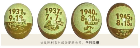 該系列作品遴選了“九一八事變”“七七盧溝橋事變”“百團大戰(zhàn)”等12例抗戰(zhàn)歷史事件作為蛋雕素材,經(jīng)過20余天的構(gòu)思與精雕細(xì)刻,岳利民讓他的“家國情懷”成為了國家記憶的一部分。