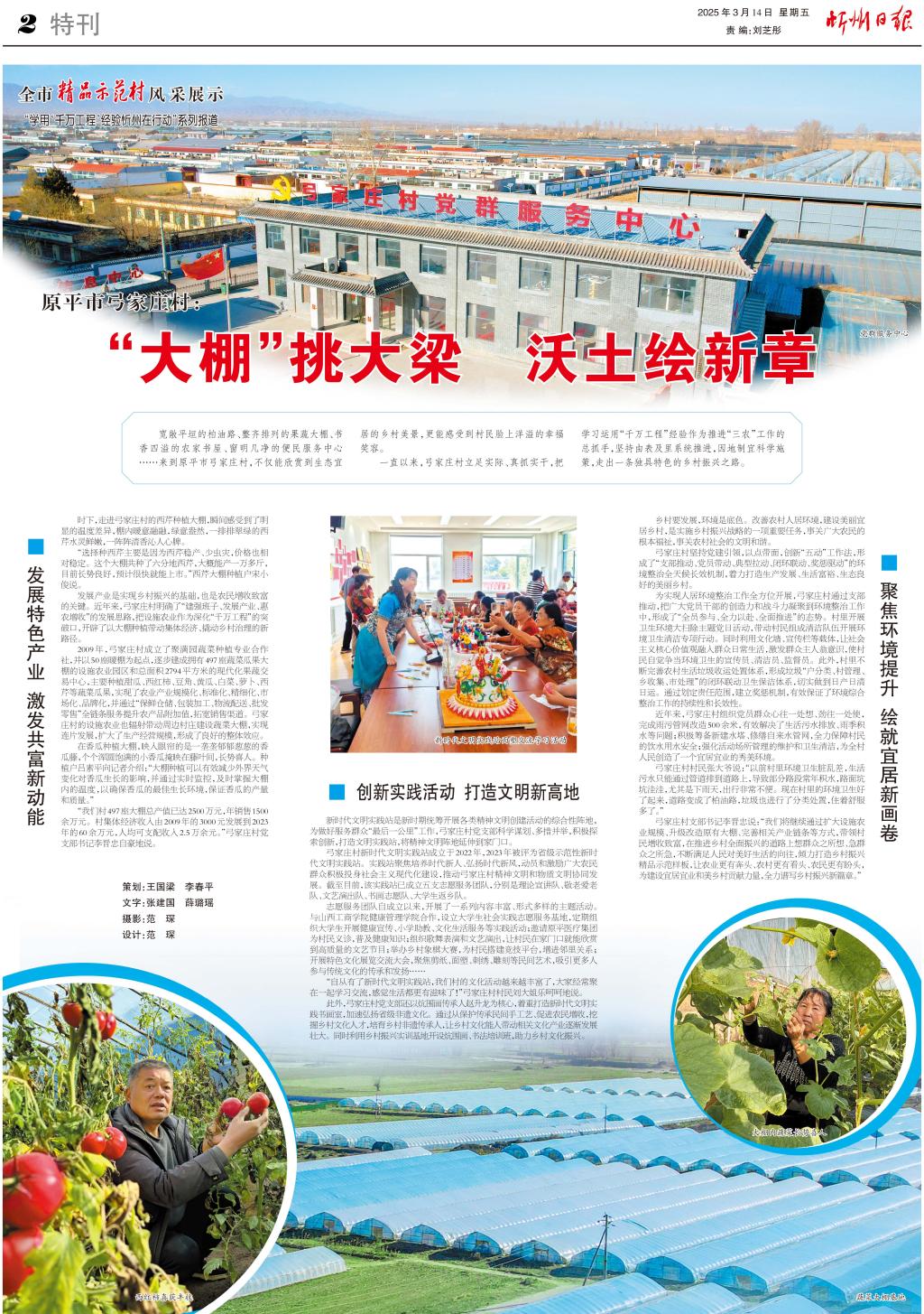 寬敞平坦的柏油路、整齊排列的果蔬大棚、書香四溢的農家書屋、窗明幾凈的便民服務中心……來到原平市弓家莊村,不僅能欣賞到生態(tài)宜居的鄉(xiāng)村美景,更能感受到村民臉上洋溢的幸福笑容。