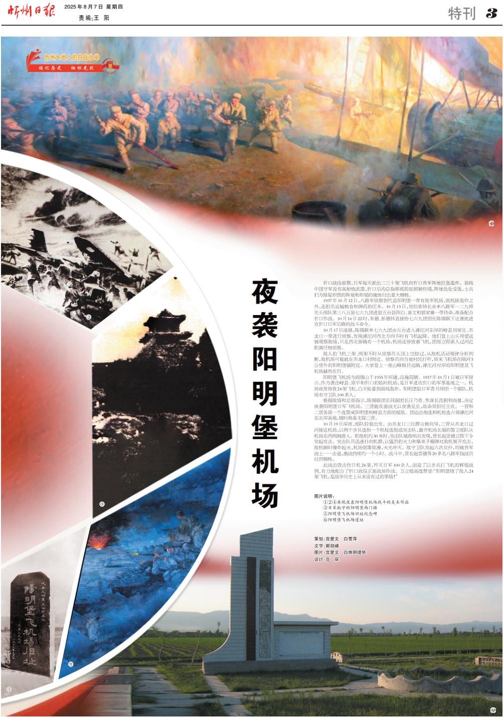 陽明堡飛機場為閻錫山于1935年所建,設(shè)施簡陋。1937年10月1日被日軍侵占,作為襲擊崞縣、原平和忻口的臨時機場,是日軍進(jìn)攻忻口的軍事基地之一。機場夜里停放24架飛機,白天輪番到前線轟炸。陽明堡駐日軍香月師團一個聯(lián)隊,機場有守衛(wèi)隊100多人。