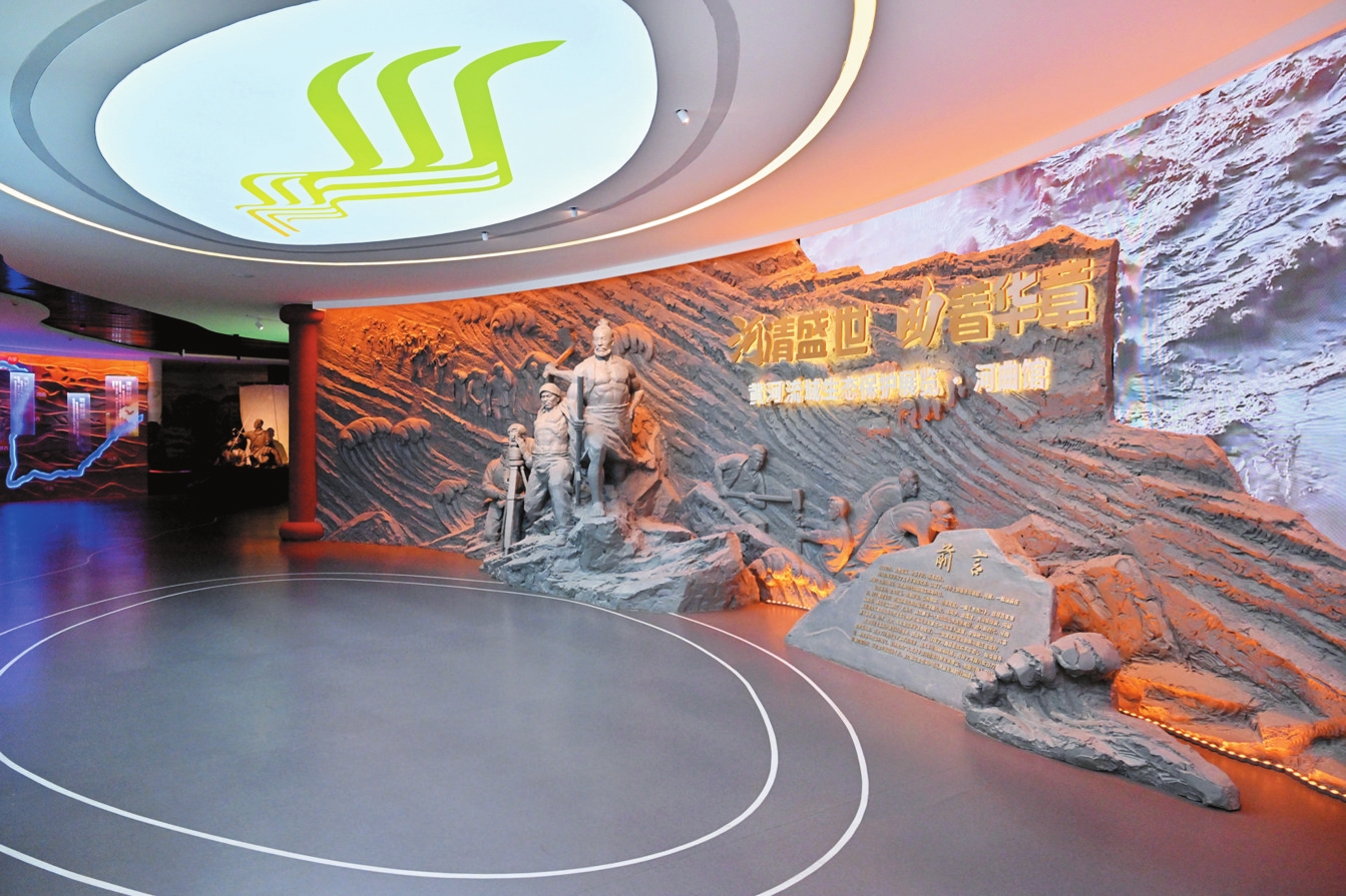 黃河流域生態(tài)保護(hù)展覽·河曲館的弧幕影院。本報(bào)記者馮曉磊攝 沿著黃河蜿蜒的足跡走進(jìn)河曲縣,臨隩公園內(nèi)一座1900平方米的黃河流域生態(tài)保護(hù)展覽·河曲館正以“河清盛世曲著華章”的主題訴說著這片土地與母親河的千年情緣,五大篇章的展陳如黃河九曲連環(huán),將70年治黃史詩(shī)徐徐鋪展。 在第一篇章“大河之曲·跡憶沉浮”展區(qū),一組“走西口”雕塑群讓人駐足——衣衫襤褸的先民們肩扛行囊跋涉在黃土坡上,凝固的姿態(tài)里藏著明清時(shí)期的苦難記憶。轉(zhuǎn)角處,解放初期的殘破土地照片與當(dāng)代郁郁蔥蔥的河曲全景照片形成震撼對(duì)比,無(wú)聲訴說著“無(wú)山不綠,有水皆清”的治理理念如何照進(jìn)現(xiàn)實(shí)。 “新中國(guó)成立后,河曲人用70年改寫了這部苦難史?!彪S著講解員王昭怡的引導(dǎo),第二篇章“大河之韻·生態(tài)保護(hù)”展區(qū)的光影漸亮?!翱矗@是賀六十九帶領(lǐng)村民造林護(hù)岸的場(chǎng)景復(fù)原?!表樦v解員的手勢(shì),50年代勞模賀六十九的雕像在光影中栩栩如生,他手中的鐵鍬與背后萬(wàn)畝林海的微縮模型定格成一個(gè)永恒畫面?!吧霸炝帧⑺篮罂礃洹钡拿缍M紅銅像前,幻影成像技術(shù)正演繹他發(fā)明的“沙棗樹抗旱栽培法”,60年代“以糧為綱,治山治水”的標(biāo)語(yǔ)墻記錄著那個(gè)年代的奮斗激情。最引人注目的是王海元帶領(lǐng)280名勞力“首戰(zhàn)掏泥溝”的群雕:刺骨寒風(fēng)中,共產(chǎn)黨員們用帶血的雙手在流沙中筑壩,雕塑底座上印有“青山綠水一盆花,光棍寡婦安下了家”的民謠,道出了治沙人用苦累換來的幸福。 轉(zhuǎn)過“治沙成果”弧幕屏,第三篇章“大河之美·生態(tài)經(jīng)濟(jì)”展區(qū)的科技感撲面而來。“河曲之眼”異形LED矩陣上,智能手環(huán)互動(dòng)裝置正演示著這座煤炭大縣的綠色蛻變?!吧嫌苋旱V成為全市第一個(gè)全礦井達(dá)到中級(jí)標(biāo)準(zhǔn)的智能化生產(chǎn)礦井?!惫ぷ魅藛T操作著全息沙盤,磷酸鐵鋰材料生產(chǎn)線、礦山機(jī)械服務(wù)基地的影像在LED矩陣上流轉(zhuǎn)。轉(zhuǎn)身遇見由紅蔥、糜子等農(nóng)產(chǎn)品拼貼而成的8米長(zhǎng)卷《鳥瞰河曲》,54萬(wàn)畝耕地與“兩干十支,十河六庫(kù)”水網(wǎng)工程的模型,詮釋著“雜糧之都”如何將生態(tài)優(yōu)勢(shì)轉(zhuǎn)化為產(chǎn)業(yè)優(yōu)勢(shì)。 “因河而生的不僅是產(chǎn)業(yè),更是文化血脈?!辈饺氲谒钠隆按蠛又辍S河文化”展區(qū),明代長(zhǎng)城磚與《河曲縣志》古籍并置陳列,講解員輕聲介紹說:“這里是黃河與長(zhǎng)城‘雙龍并行’之地,楊家將練兵的石鎖至今留有刀痕。”耳畔忽然飄來悠揚(yáng)的山曲,古戲樓造型的舞臺(tái)上,《走西口》選段正精彩上演,臺(tái)下的互動(dòng)裝置允許觀眾轉(zhuǎn)動(dòng)膠片聆聽不同年代的唱腔。臺(tái)下展柜里,明長(zhǎng)城磚與河燈會(huì)彩燈交相輝映,《大禹治水》《娘娘灘傳說》的連環(huán)畫引人注目。 在第五篇章“大河之夢(mèng)·生態(tài)和諧”展區(qū)的弧幕影院里,《河清盛世曲著華章》主題影片展現(xiàn)著新時(shí)代圖景:國(guó)家園林縣城的林蔭道上,光伏板與古長(zhǎng)城交相輝映;黃河濕地公園里,黑鸛與白天鵝掠過水面;整溝治理后的山坡上,民宿集群飄起裊裊炊煙。 走出展館,落日余暉為黃河披上金紗,西口古渡的游客們正用手機(jī)記錄晚霞中的護(hù)岸林。這座濃縮了70年治黃史詩(shī)的展館,恰如黃河岸邊的一座精神燈塔,指引忻州兒女在生態(tài)保護(hù)與高質(zhì)量發(fā)展之路上奮進(jìn)前行。 (責(zé)任編輯:梁艷) |
