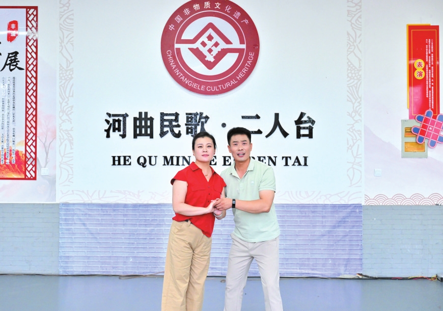走進(jìn)河曲縣白樸公園,一段清亮婉轉(zhuǎn)的唱腔便隨風(fēng)入耳——河曲縣民歌二人臺(tái)藝術(shù)團(tuán)演員鄔光正和同事們?nèi)橥度?,打磨大型非遺音樂(lè)劇《大河長(zhǎng)歌》。他額角滲著細(xì)密的汗珠,當(dāng)唱到“好兒女今日唱長(zhǎng)歌,勝過(guò)了前輩了不得”時(shí),突然停了下來(lái),對(duì)搭檔說(shuō):“再來(lái)一遍,剛才那口氣沒(méi)頂滿?!边@份對(duì)細(xì)節(jié)的較真,藏著他對(duì)二人臺(tái)藝術(shù)最樸素也最深厚的敬畏。