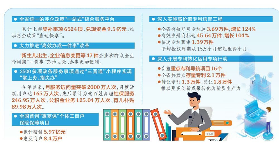 營(yíng)商環(huán)境是企業(yè)生存發(fā)展的土壤?!笆奈濉币詠?,我省始終將優(yōu)化營(yíng)商環(huán)境作為高質(zhì)量發(fā)展的關(guān)鍵支撐。全省市場(chǎng)監(jiān)管系統(tǒng)、審批服務(wù)系統(tǒng)立足職能、改革創(chuàng)新、攻堅(jiān)克難,從政務(wù)服務(wù)、數(shù)字賦能、市場(chǎng)監(jiān)管、質(zhì)量安全等多維度發(fā)力,推動(dòng)全省營(yíng)商環(huán)境持續(xù)優(yōu)化、市場(chǎng)活力充分迸發(fā),為全省全方位轉(zhuǎn)型發(fā)展筑牢堅(jiān)實(shí)基礎(chǔ)。