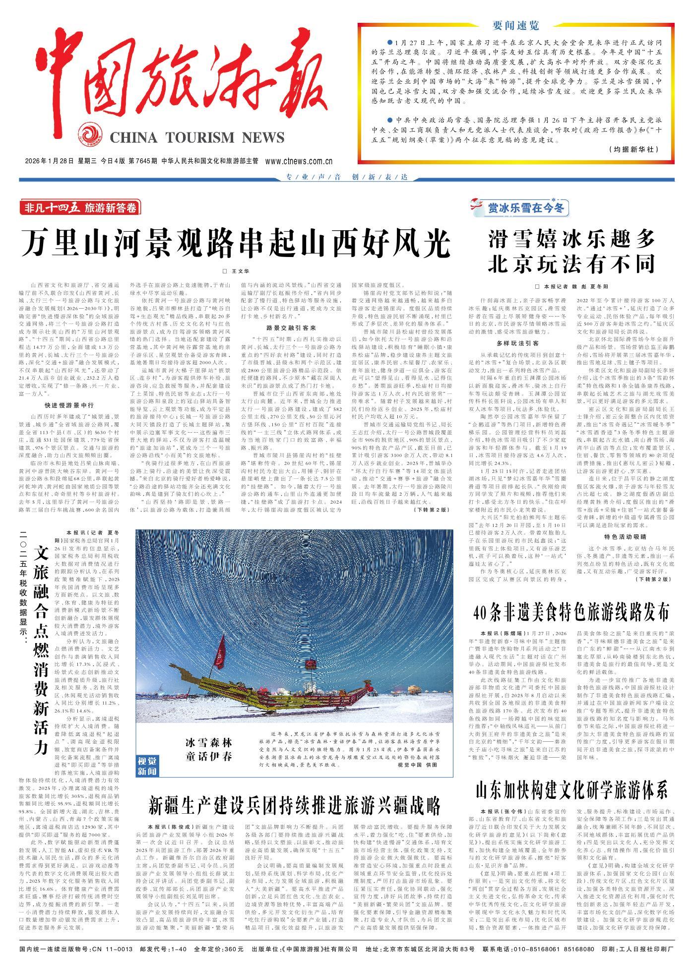 山西省文化和旅游廳、省交通運輸廳前不久聯(lián)合印發(fā)《山西省黃河、長城、太行三個一號旅游公路與文化旅游融合發(fā)展規(guī)劃(2026—2030年)》,明確完善“快進慢游深體驗”的全域旅游交通網(wǎng)絡(luò),將三個一號旅游公路打造成為展示壯美山西的“萬里山河景觀路”?!笆奈濉逼陂g,山西省公路總里程達14.77萬公里,全面建成1.3萬公里的黃河、長城、太行三個一號旅游公路,深化“交通+旅游”融合發(fā)展模式,不僅串聯(lián)起“山西好風光”,還帶動了21.4萬人返鄉(xiāng)創(chuàng)業(yè)就業(yè)、232.2萬人穩(wěn)定增收,實現(xiàn)了“修一條路、興一片業(yè)、富一方人”。